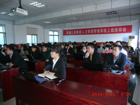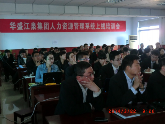 2014年3月22日上午9:00,華盛江泉集團人力資源管理系統(tǒng)薪酬管理模塊培訓會在人社中心三樓舉行,參加培訓會的有集團薪資專員、單位人事專員、用友HR項目組成員、江泉HR項目組成員共70余人。江泉方項目組代表申路平主持了本次培訓。